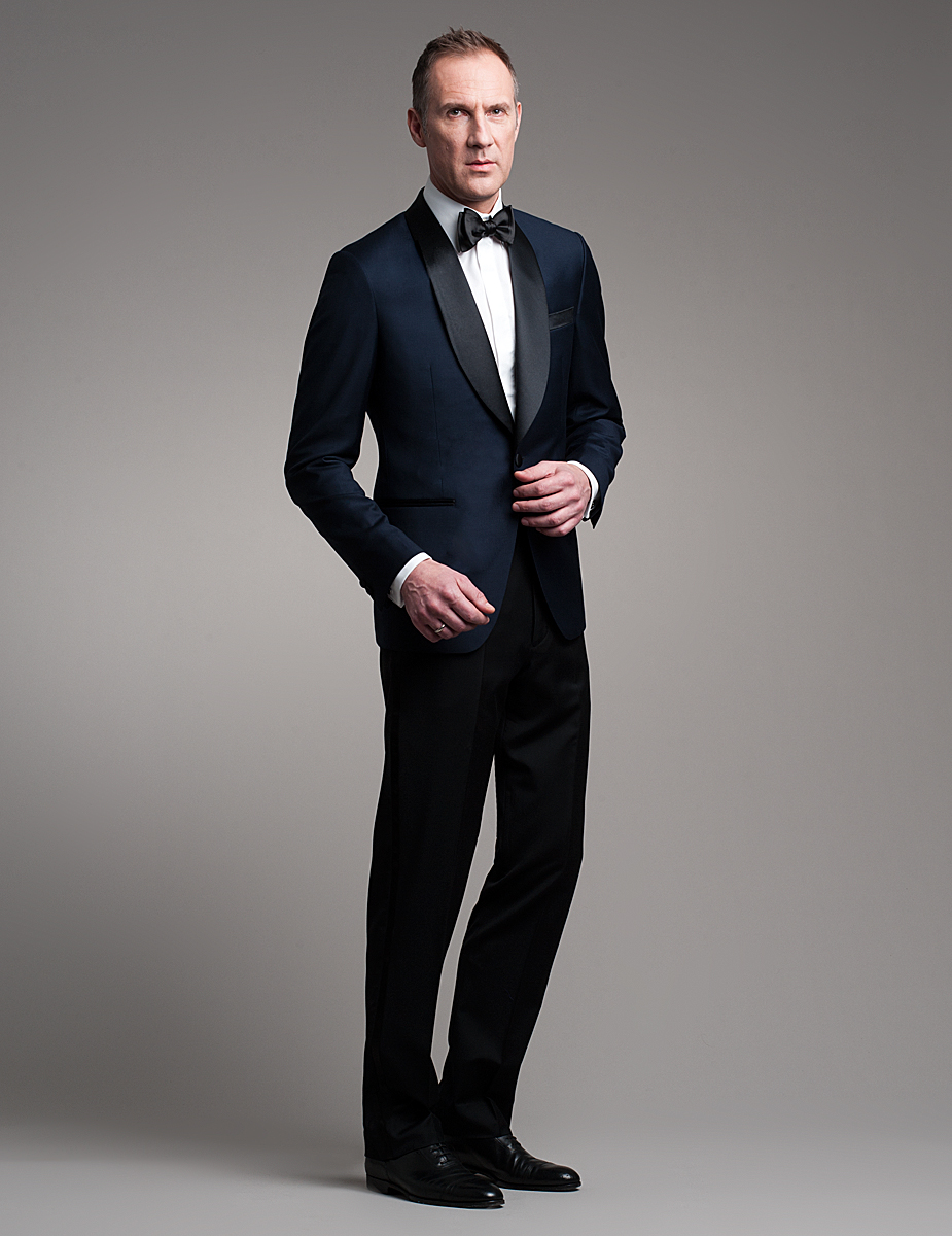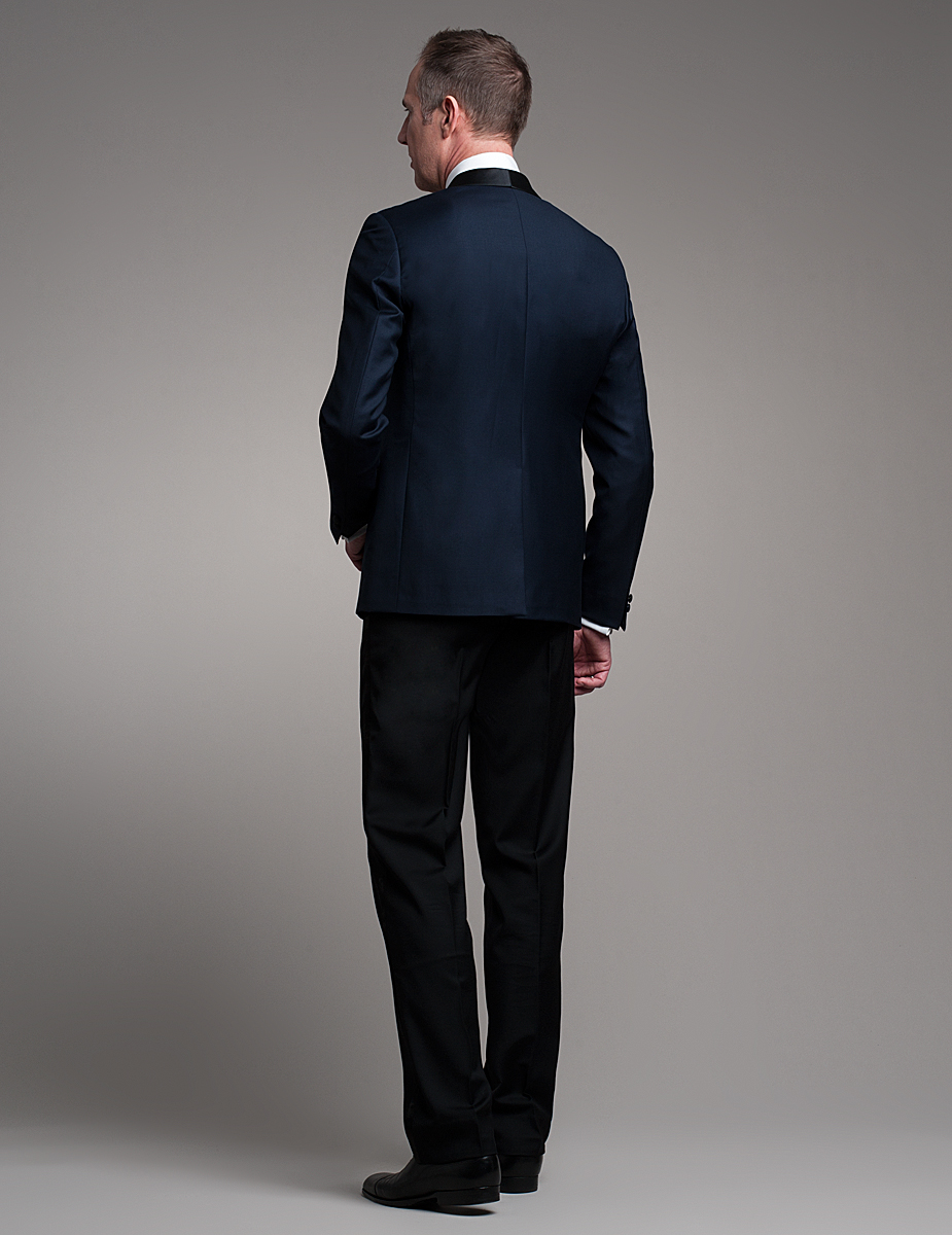 blau-schwarz mit Schalkragen